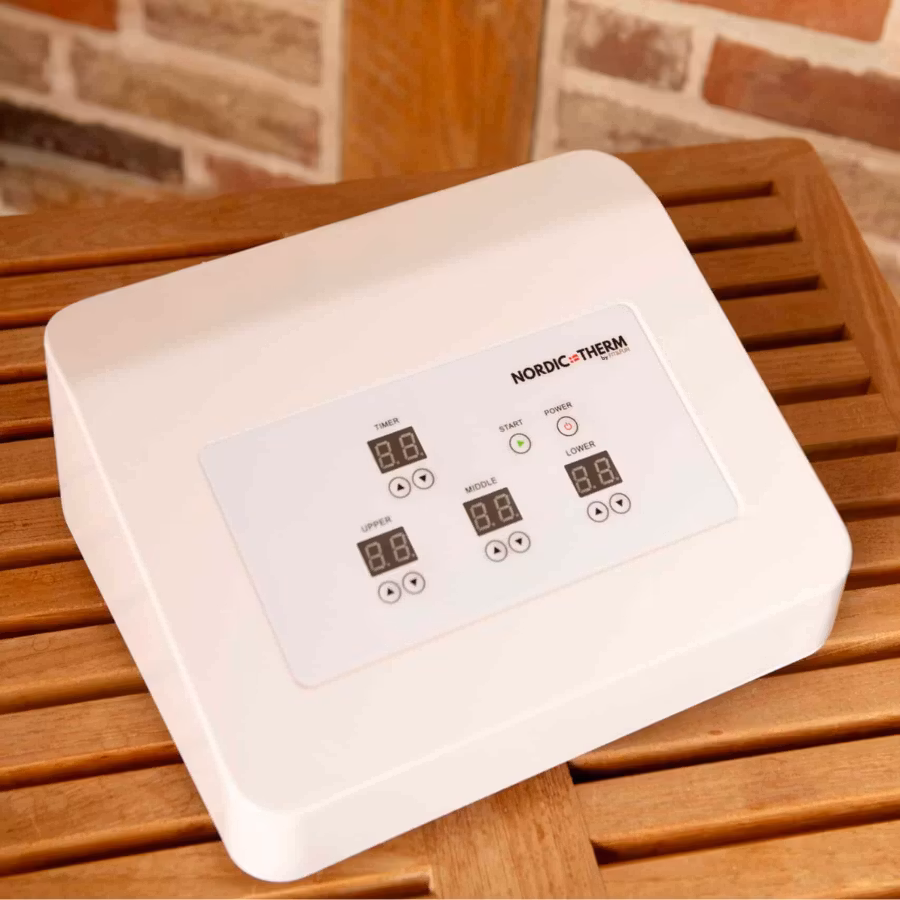 Deluxe är en infraröd bastufilt med tre värmezoner och integrerade energistenar som ger jämn och anpassningsbar djupvärme för avslappning och återhämtning i hemmet. Den är framtagen för dig som vill kombinera värme, komfort och en mer omfattande wellness-rutin i vardagen.