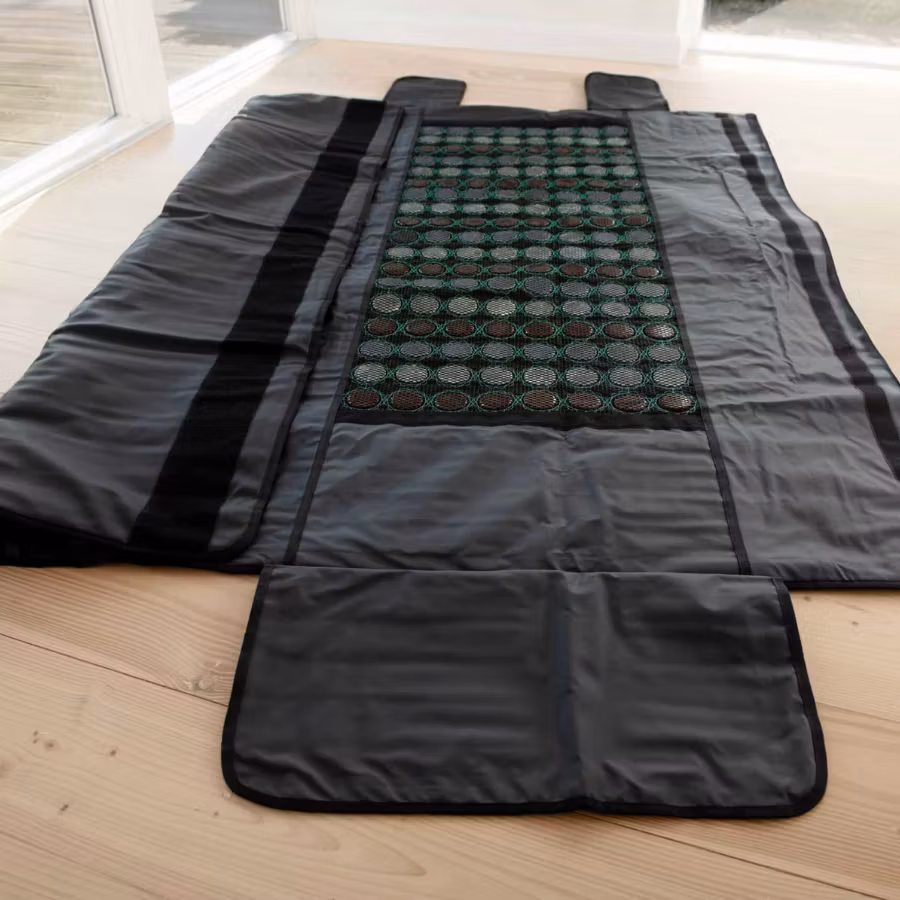 De tre individuellt reglerbara zonerna gör att värmen kan anpassas efter olika delar av kroppen. Den infraröda värmen används ofta för att hjälpa muskler att slappna av, minska känslan av stress och skapa en lugn stund för återhämtning. De inbyggda energistenarna i jade, bian och turmalin samverkar med värmen och bidrar till en jämn och behaglig upplevelse under användning.