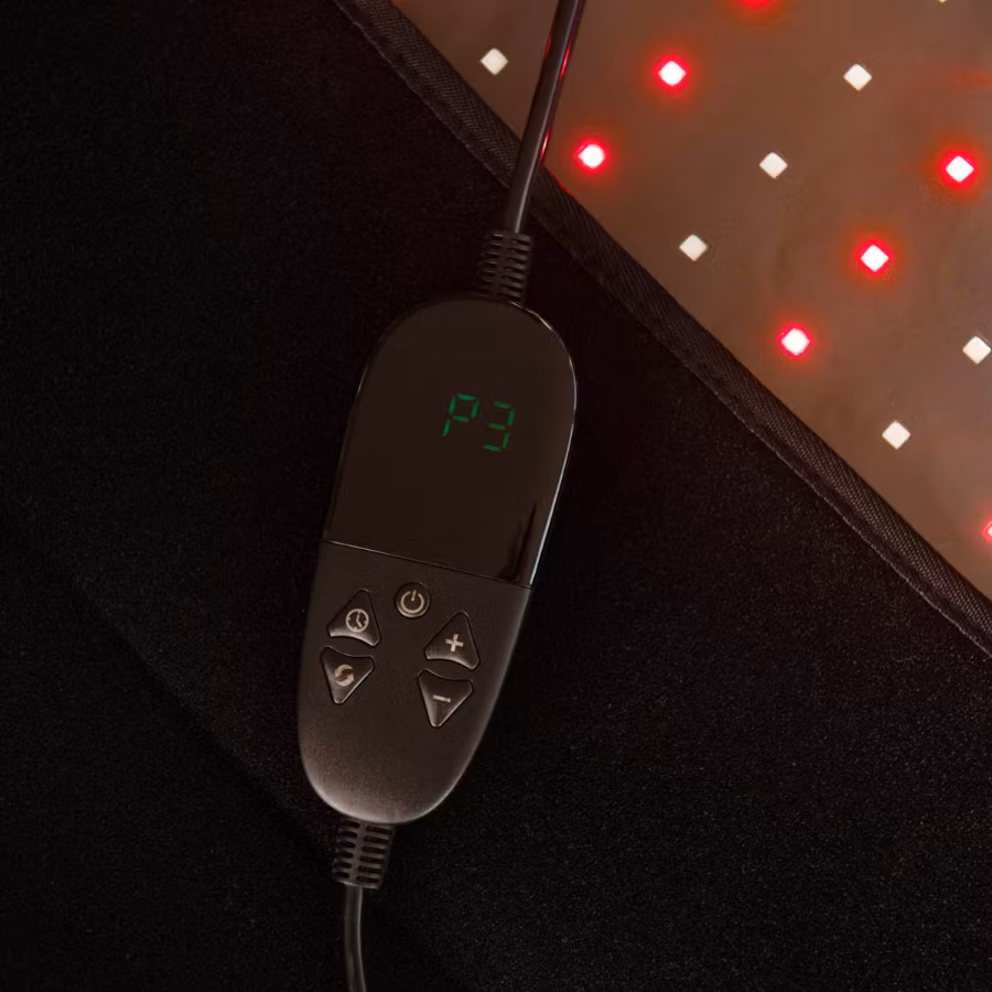 Enheten använder 660 nm rött ljus för ytligare behandling och 850 nm nära infrarött ljus för djupare exponering. De två separata filtarna styrs via individuella kontroller, vilket gör det möjligt att anpassa varje session. Sovpåsekonstruktionen omsluter kroppen och ger jämn ljusfördelning under behandlingen.